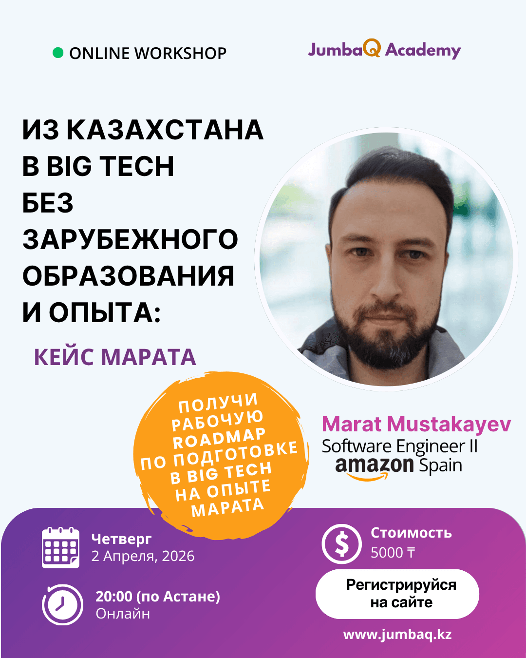 Приглашаю вас на воркшоп с Маратом, где вы составите личную дорожную карту подготовки к Big Tech на основе его опыта.