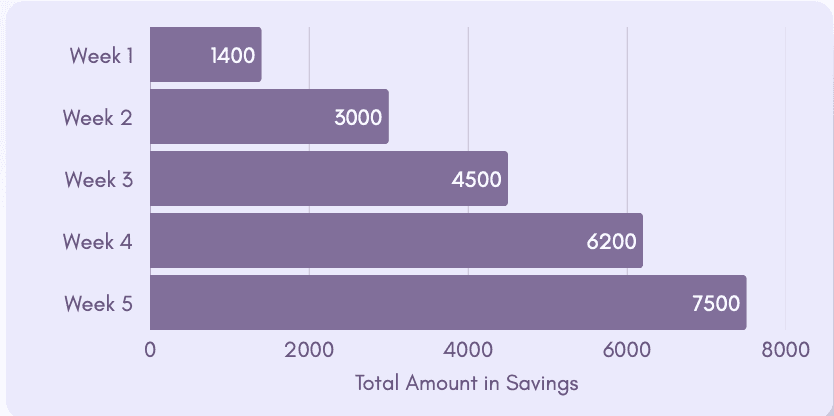 👉 Сумма, отложенная на неделях 4 и 5 = 7500 – 4500 = 3000 ₸