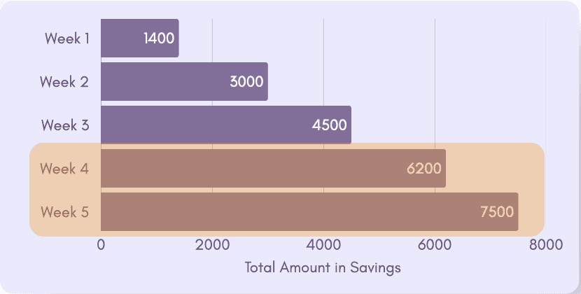 Теперь вам нужно узнать: а сколько вы отложили только на 4-й и 5-й неделях?